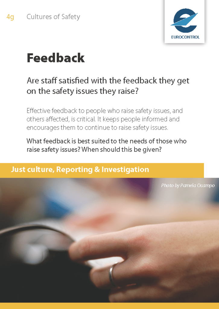 The best investigations, in my experience, involve reportees (and others involved) properly in the investigation. The reporter, despite sharing the same memory and cognitive biases as all of us (including investigators), is essential to tell their story, make sense of the issues, and think about possible fixes. How those involved understand the event (including different and seemingly incompatible versions of accounts, which will naturally arise from different perspectives) gives valuable information. Whether those involved are seen as co-investigators or subjects will affect the result and the likelihood of reporting. During and after the investigation, a lack of feedback is probably the most common system problem; often the result of flaws in the safety management system or an under-resourced investigation team. More generally, people need to see the results of investigations in order to trust them. Not providing access to reports may confirm fears about reporting. On the other end of the scale, overwhelming people with batches of reports and forcing them to read lengthy and sometimes irrelevant reports will not help.