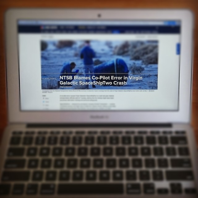 Virgin Galactic crash blamed on human error – Human error was responsible for the catastrophic 2014 crash of an experimental Virgin Galactic rocket ship that left the co-pilot dead. Specifically, the “probable cause” of the crash was the “pilot’s premature unlocking of the SpaceShipTwo feather system,” the National Transportation Safety Board said Tuesday. The feather locks are essentially a braking system designed to allow the rocket to safely descend from space.